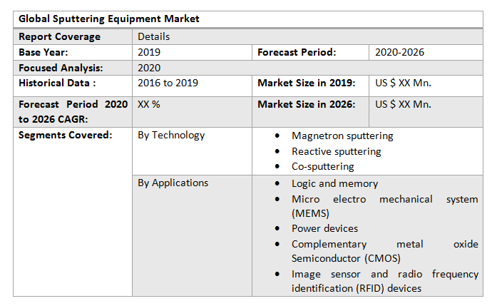 The primary goal of the Global Sputtering Equipment market research is to provide detailed information on market opportunities that are assisting in the transformation of Global Sputtering Equipment enterprise. Report provide projected growth rates along with the compound annual growth rate (CAGR) for forecasted period to enable readers to better understand the monitoring and assessment of the Global Sputtering Equipment market, as well as to discover lucrative opportunities in the market.